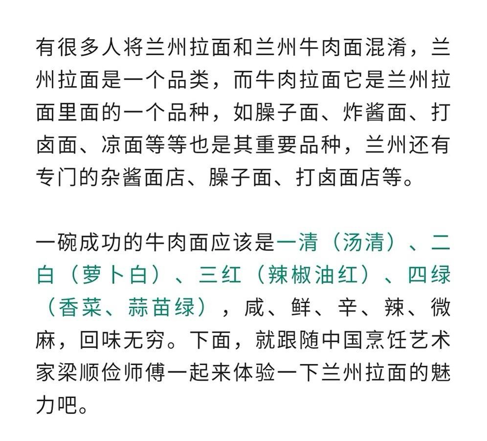 作者寄语:曾经在写字楼工作时候连续吃了一个月的兰州拉面,每天中午都是牛肉拉面,2两面15块钱,小碗也够一个人吃。牛肉拉面我们在学校也练习过,拉面的时候是很有讲究的刚开始练习拉面掌握不住技巧的话就会把面条拉断,配方,水量,温度,都会影响面的成型。那会我感觉非常的神奇,看到有人能把面拉到打火机一点就可以燃起来,非常厉害。但是当时我们年轻气盛不把别人的技术看在眼里,感觉这有什么啊,很简单的玩意啊。