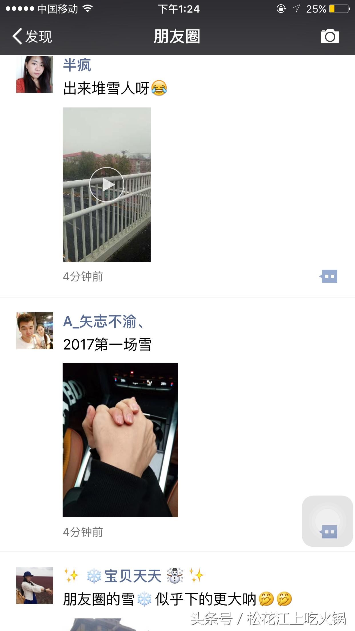 下雪啦,2017年的第一场雪总是那么突然!我朋友圈是这样的……