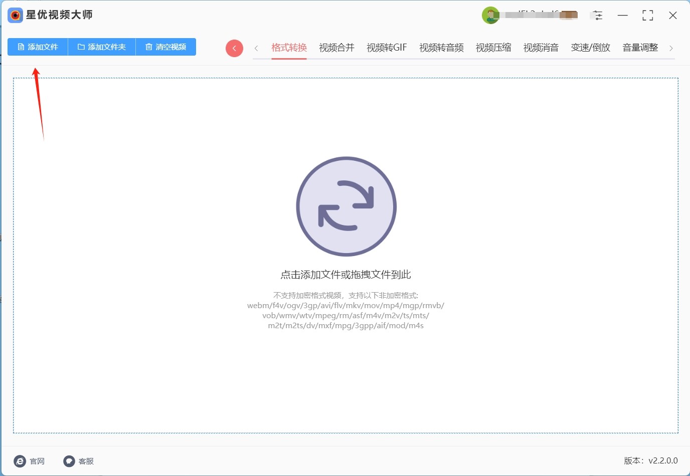 点击“添加文件”按钮:在视频格式转换页面,你会看到一个“添加文件”或“导入视频”的按钮。点击此按钮,打开文件选择对话框。