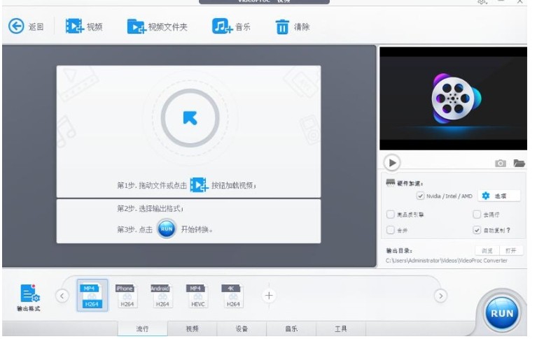 高效快速:VideoProc 使用硬件加速技术(如 Intel QSV、NVIDIA CUDA 和 AMD)、并采用独特的视频编码技术,确保视频转换过程迅速且不丢失质量。