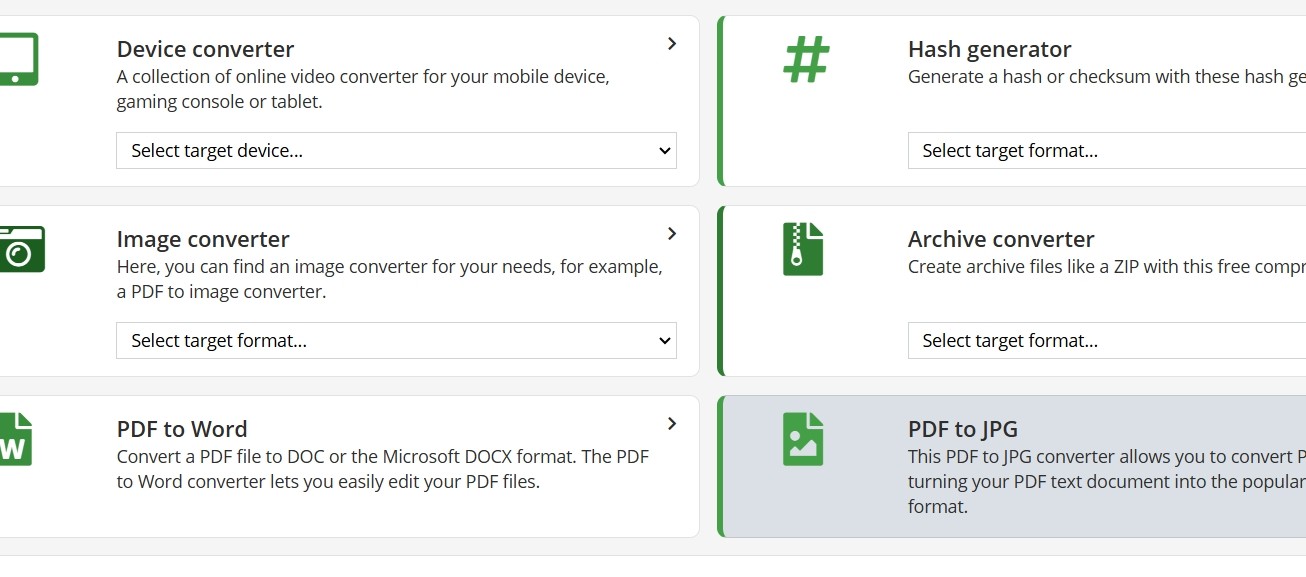 主页上有一个清晰的导航条,提供不同类型的文件转换服务。在视频转换区,点击 "Video Converter"。