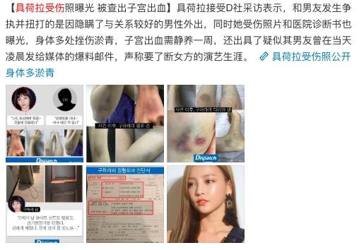不久事情出现反转,具荷拉出示医院证明及受伤照片:子宫出血、身上多处淤伤,比男方受伤严重太多,具荷拉只是因男友深夜闯进家中施暴的正当防卫。