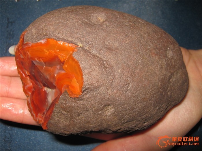 【4】玛瑙,即是石英。常有少量的针铁矿、赤铁矿、云母、绿泥石等。纤维状、粒状结构。部分有晶洞。硬度为6.5—7。密 度为2.60g/cm3,折 射 率为1.53—1.54。颜色多为黄色、红色、白色、灰色和绿色等,有玻璃光泽、油脂光泽,有些有晕彩效应。
