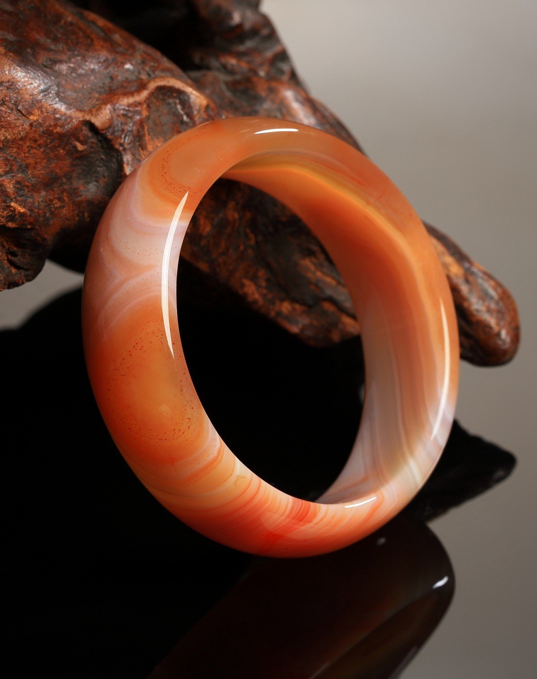 【5】玉髓。石英矿的一种。可透明,是隐晶质石英,带少量的针铁矿、赤铁矿、硅孔雀石、镍滑石等。有纤维状、粒状结构。硬度为6.5—7,密 度为2.60g/cm3。多为黄色、紫色、灰白色、绿色、红色、蓝色等。常见油脂光泽、玻璃光泽、蜡状光泽。