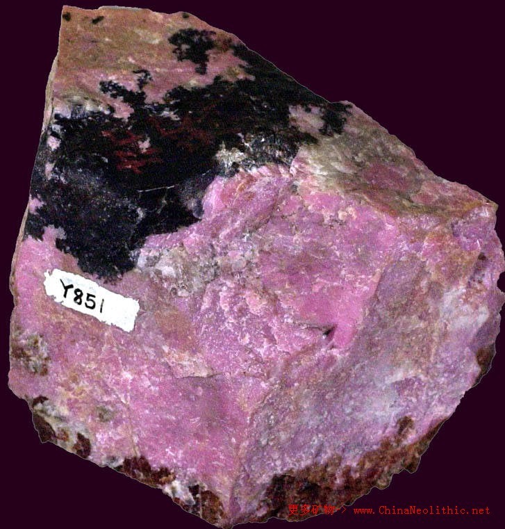 【12】蔷薇辉石。由蔷薇辉石、石英组成,晶质集合结构,常为细粒块状。具有玻璃的光泽。硬度为5.5—6.5,密 度为3.5g/cm3,折 射 率为1.73,含石英多的可降低到1.54。