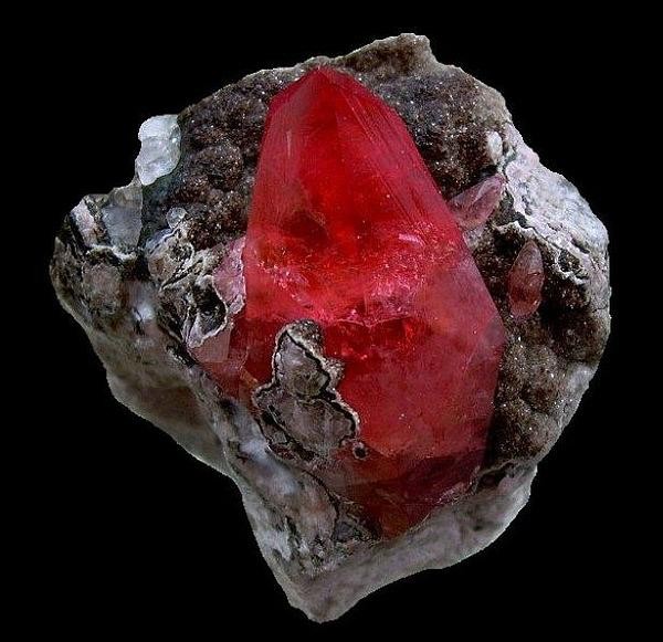 【21】菱锌矿。晶质体结构,具有亚玻璃光泽和玻璃光泽。硬度为4—5,密 度为4.30g/cm3,折 射 率为1.621—1.849。碰到盐酸会起泡。