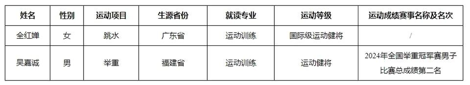 根据《体育总局办公厅关于做好2025年高校保送录取优秀运动员有关事宜的通知》(体科字〔2025〕3号)精神和《暨南大学2025年优秀运动员保送生招生简章》相关规定,经考生本人申请,暨南大学组织相关学科专家对考生报名材料进行审核,现将暨南大学2025年优秀运动员保送拟录取名单予以公示。