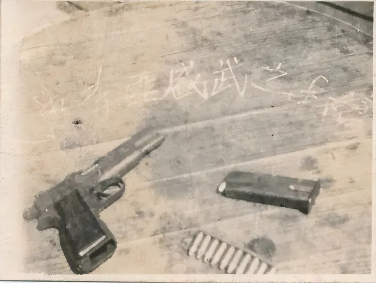 木匠店掌柜站起来客气地问有何事?徐志刚冲掌柜的摆摆手,对李三说:“我是区政府工作组的,有事要找你谈谈。”李三立马站了起来,由于紧张,他失手打翻了桌上的酒杯,酒洒了一地。徐志刚的右手一直抄在裤兜里牢牢握住手枪,食指搭扣在扳机上,并把枪口对准了李三的腹部。