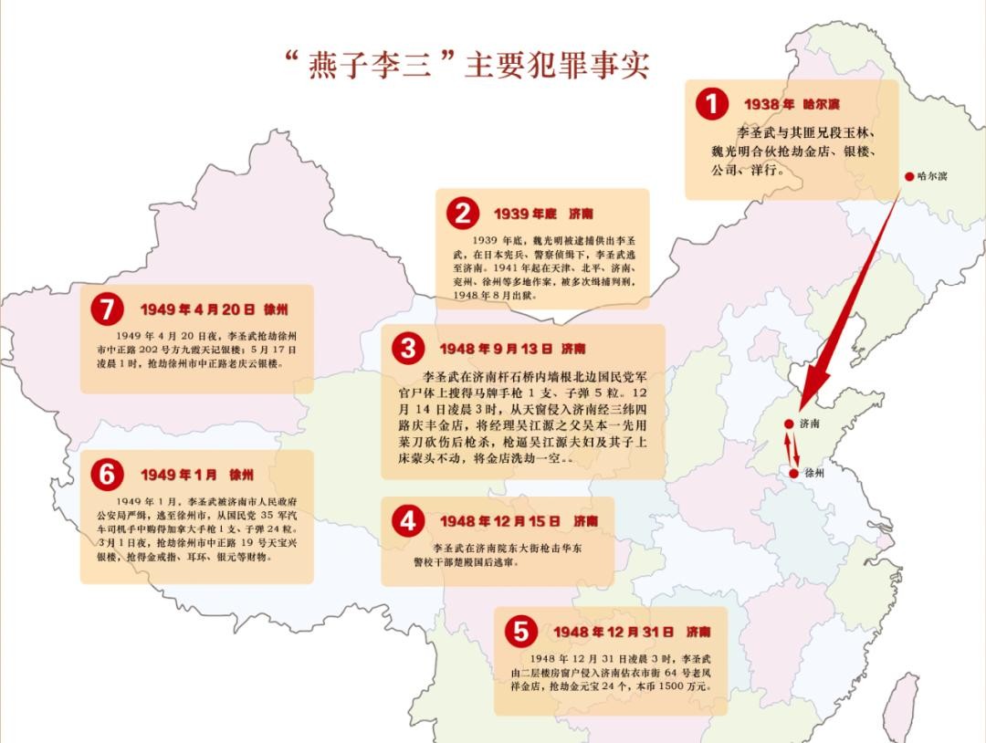 中华人民共和国成立后的济南万象更新。然而李三并没有收手,依然猖狂实施着犯罪行为。1948年12月16日夜,他抢劫了位于经三路纬四路的庆丰金店,开枪打死了金店老板吴本一。没过多久,又抢劫了估衣市街64号老凤祥金店的24个金元宝和现金1500万元,紧接着他杀害了居住在芙蓉街芙蓉巷5号的商人纪波亭,又在院东大街开枪射杀了我公安民警楚殿国。