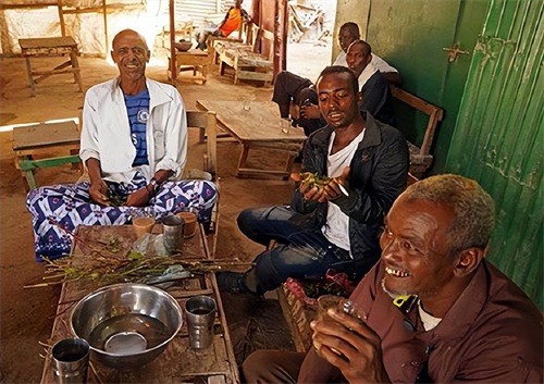在索马里兰,每天下午一点到四点这段时间是休息时间,到了这个时候,街道里、树荫下、商店里就会挤满了吃卡特叶的人。