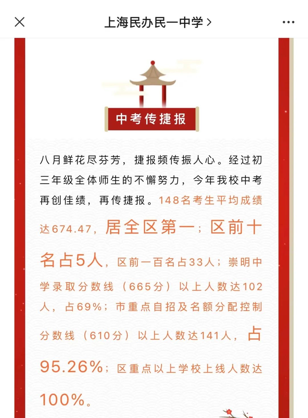 闵行区最大的黑马,莫过说明星中学,全区排名第二。